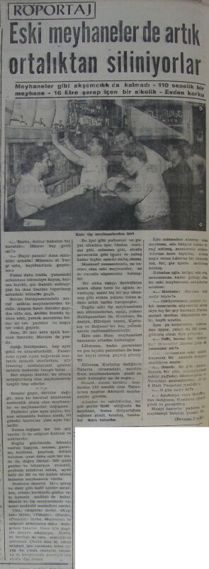 Genelde birbirini tanıyan müdavimlerin uğradığı, arada sırada uğrayan yeni kişilerle ve hemen her kesimden insanla muhabbet edilebilen, sıcak ve derin sohbet imkânı bulunan meyhaneler dönemi 60’lı yılların sonuna doğru kaybolmaya başlar. Meyhane döneminin kapanmasının çok sayıda sebebi vardır. En önemli nedenlerden biri de, bu konuda usta olan Rumların ülkemizden ayrılmasıdır (Zat, 2021).
